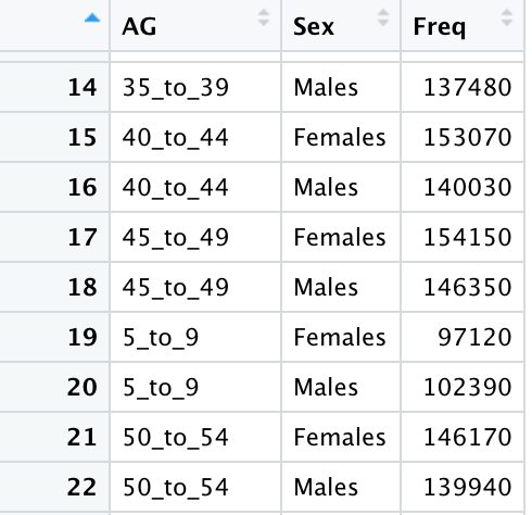 select(AG, Sex, Pop)
