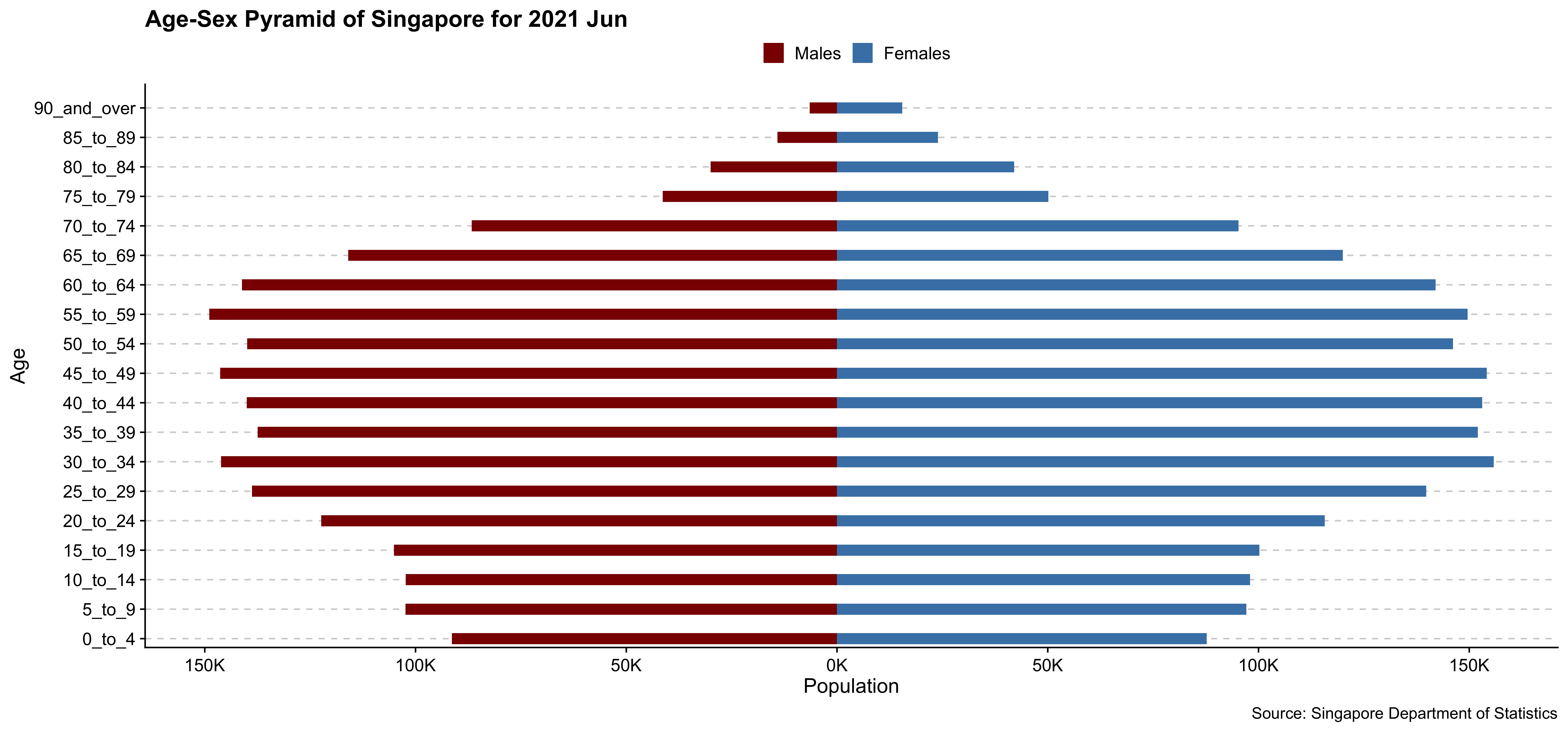labs(x = "Age", y = "Population", title = 'Age-Sex Pyramid of Singapore for 2021 Jun',